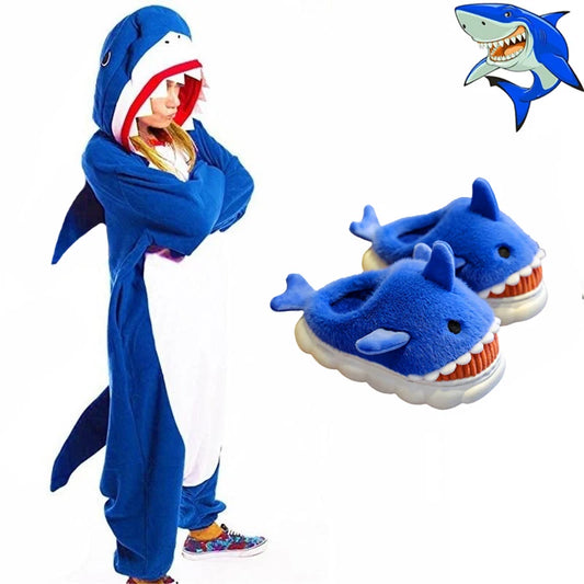 🦈 Blue Shark Onesie Pajamas – Soft cartoon kigurumi for men & women