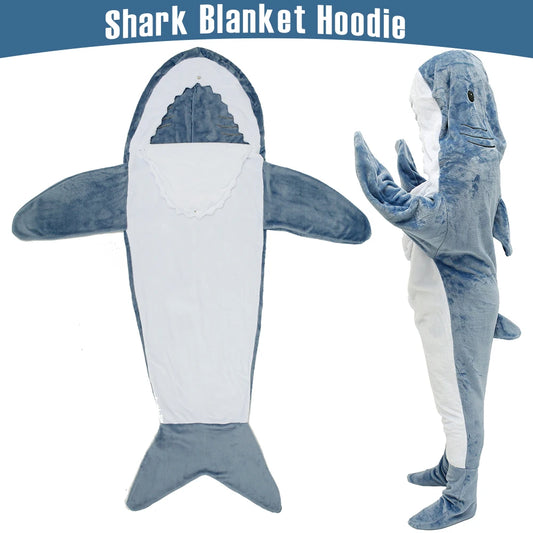 🦈 Shark Blanket Hoodie – Soft flannel wearable blanket for adults.